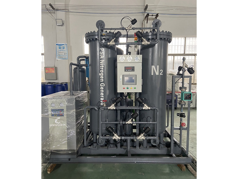 ??變壓吸附PSA制氮機(Pressure Swing Adsorption,簡稱PSA)是指以干凈的壓縮空氣為原料,利用物理的方法,按變壓吸附技術(shù)設(shè)計、制造的氮氣設(shè)備。制氮機以優(yōu)質(zhì)進口碳分子篩(CMS)為吸附劑,采用常溫下變壓吸附原理,分離空氣制取不同純度的氮氣。通常使用兩吸附塔并聯(lián),由進口PLC控制進口氣動閥自動運行,交替進行加壓吸附和解壓再生,完成氮氧分離,獲得所需不同純度的氮氣。